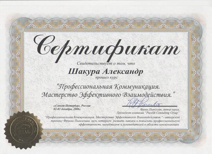 2002 год - "Мастер НЛП" (Институт НЛП&Белорусский Центр НЛП, А.Виноградов)